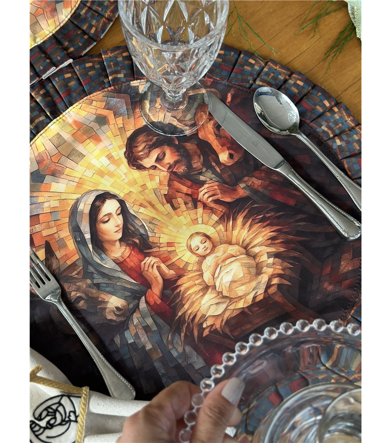 Guardanapo Sagrada Família Mosaico em linho misto